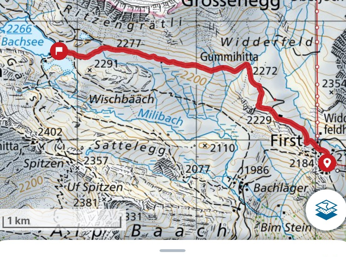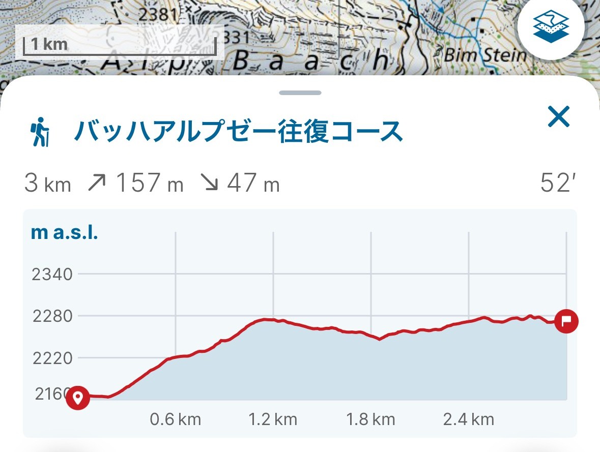 このフィルスト展望台から行けるおすすめトレッキングコースは、往復2時間ほどの「バッハアルプゼー湖」を目指す初心者コース。かなり人気のコースのようでトレッキングしている方がたくさん!コースは一本道で分かりやすいですが登りもあるので体力が必要。ちなみに今回は途中で天気が急変して雷予報が出たので、湖に辿り着くことなく引き返しました。